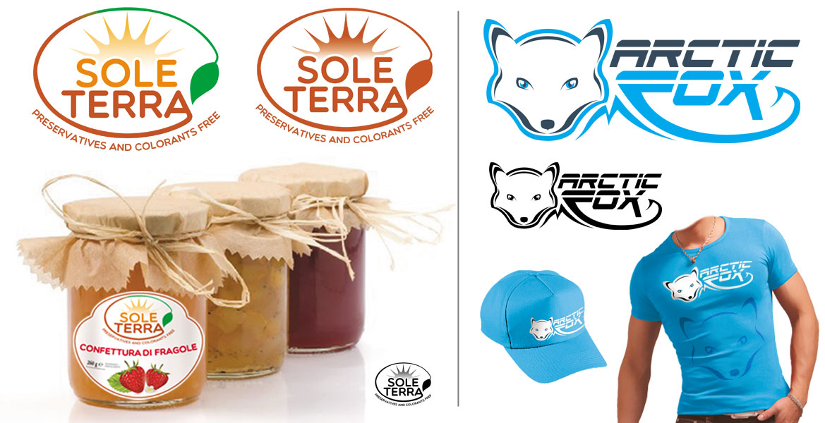 Progettazione di marchio e logotipo per Soleterra e Arctic Fox. Prove sottoposte alla partecipazione di contest organizzati dalla piattaforma 99 Design.